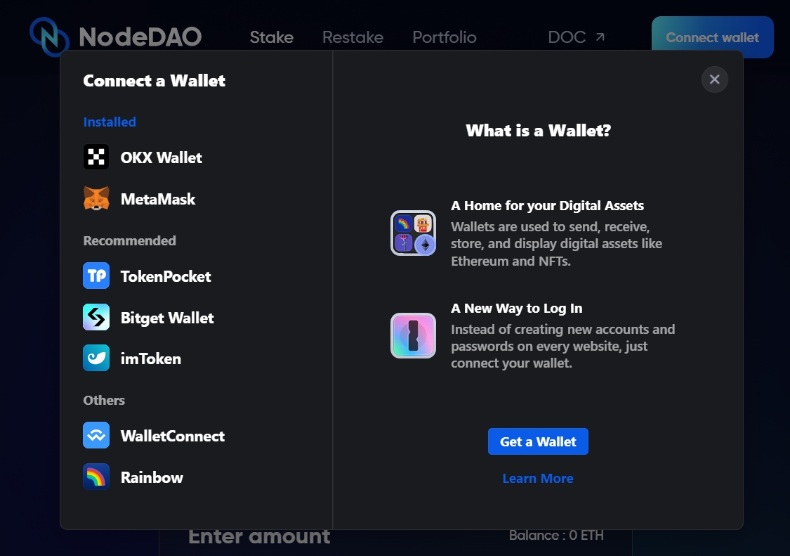 Step 2 - Choose your preferred walletBy staking with us, you can earn rewards while watching your nETH tokens appreciate relative to ETH as long as our node operators continue to generate staking rewards. Start staking with us today and earn rewards!