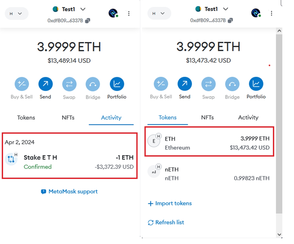 Voila! You will see a new token in your wallet called nETH which represents your staked ETH and grows with the daily staking rewards.