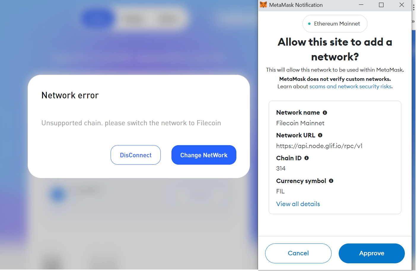 Step 1) Add the FIL chain in the MetaMask wallet
