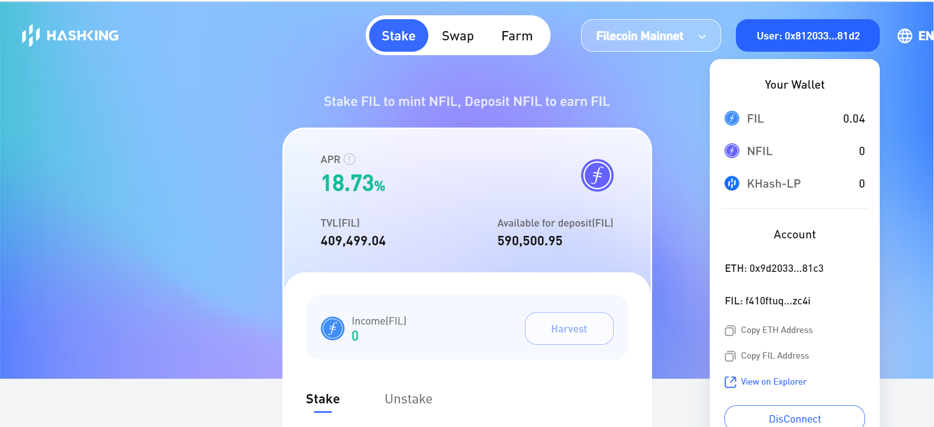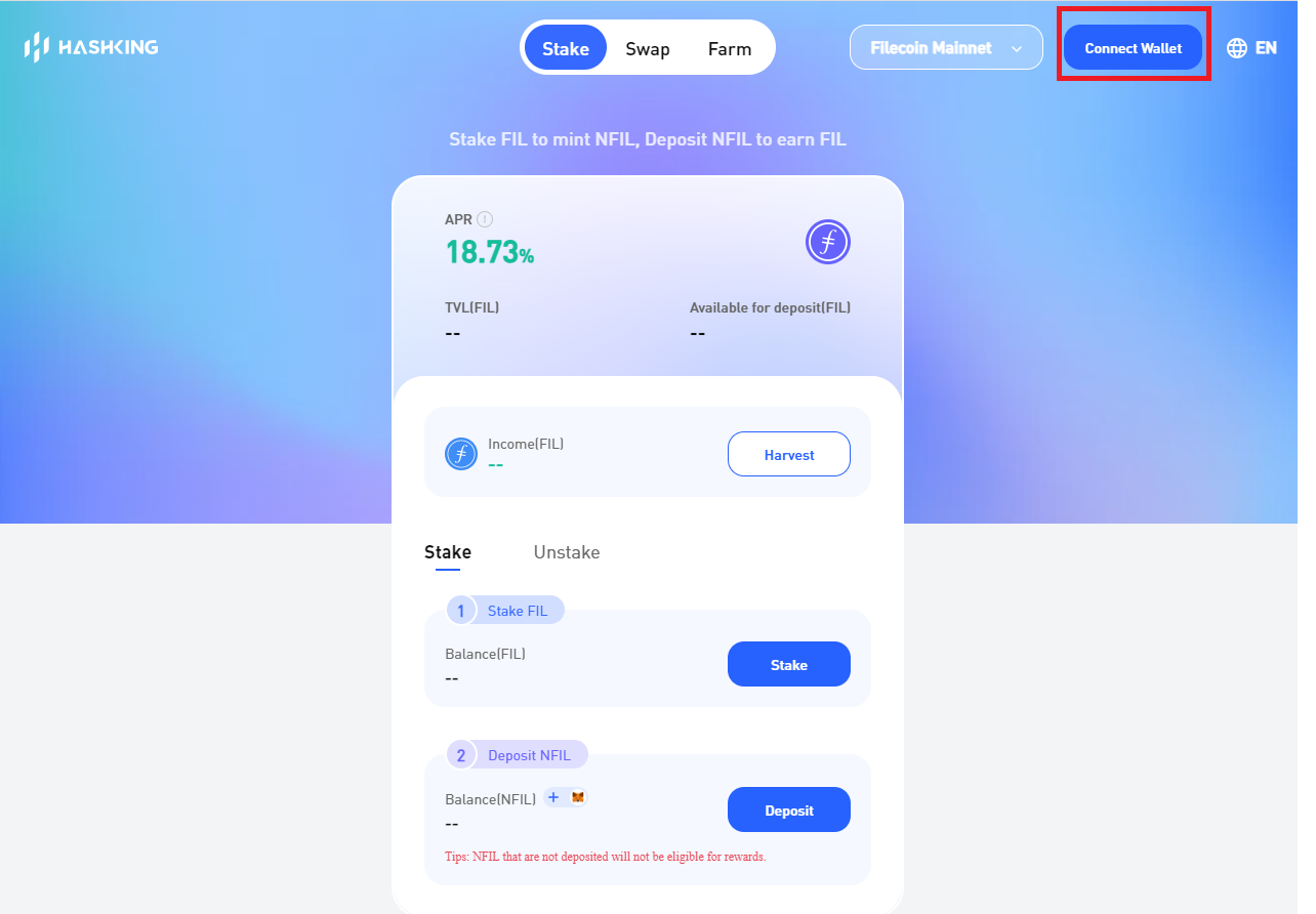 1.2 Steps for automatically adding the FIL chain to Metamask through HashKing