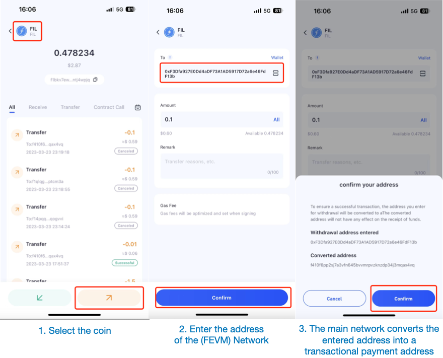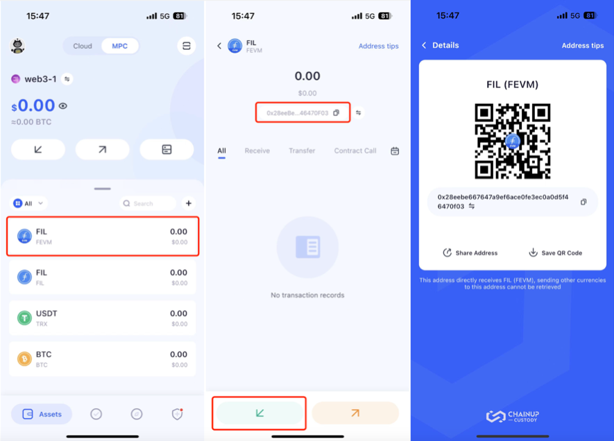 Steps to transfer FIL native network assets to FEVM with ChainUp Custody