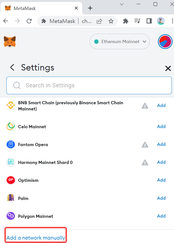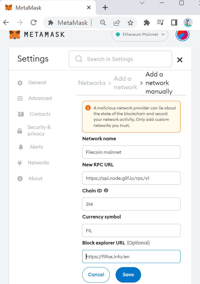 1.1 Here are the steps to manually add the FIL chain to MetaMask: