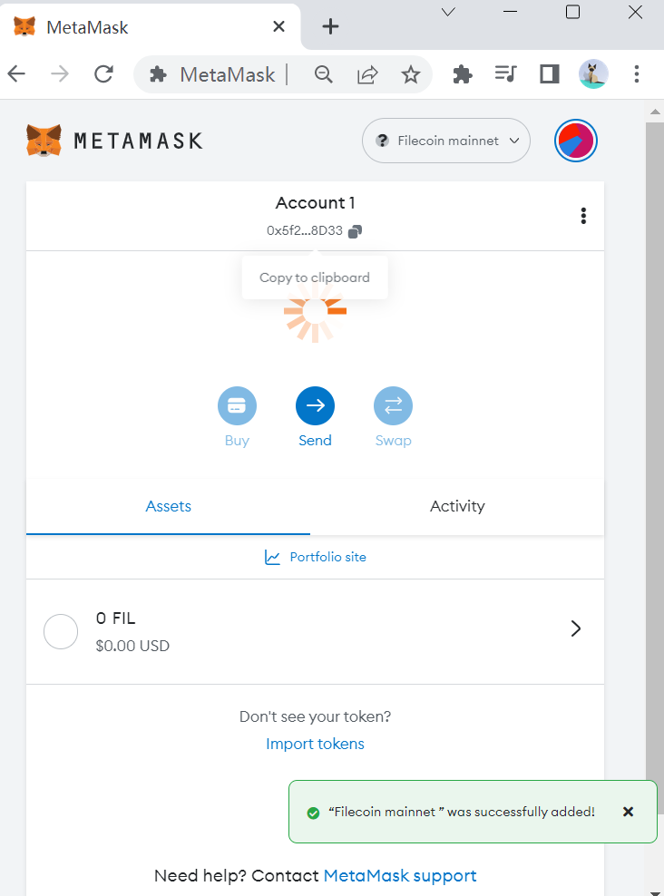 2.1 Users can transfer Filecoins from other wallets or exchanges to MetaMask wallet address
